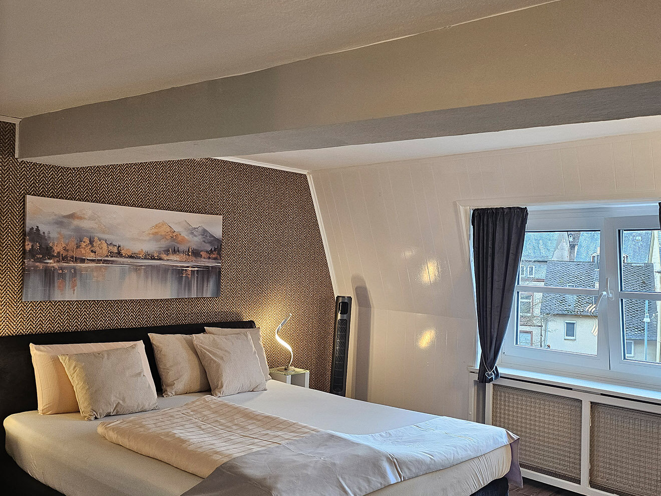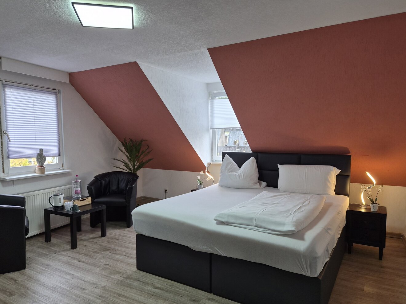 Unsere neu renovierten Zimmer sind modern ausgestattet und bieten alles, was Sie für einen erholsamen Aufenthalt benötigen: bequeme Betten, Dusche/WC, Fön, Flat-TV, Schreibtisch, Safe, Wasserkocher, Kaffee und kostenfreies WLAN. Beginnen Sie Ihren Tag mit unserem reichhaltigen Frühstücksbuffet und genießen Sie entspannte Stunden auf unserer Dachterrasse direkt unterhalb der berühmten Felsenkirche – mit einem atemberaubenden Blick über die Stadt.