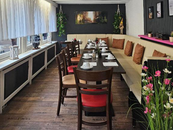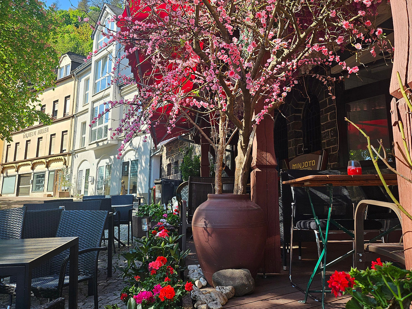 Beginnen Sie Ihren Tag mit unserem reichhaltigen Frühstücksbuffet und lassen Sie den Abend entspannt auf unserer Dachterrasse ausklingen – direkt unterhalb der berühmten Felsenkirche, mit einem wunderschönen Blick über Idar-Oberstein.