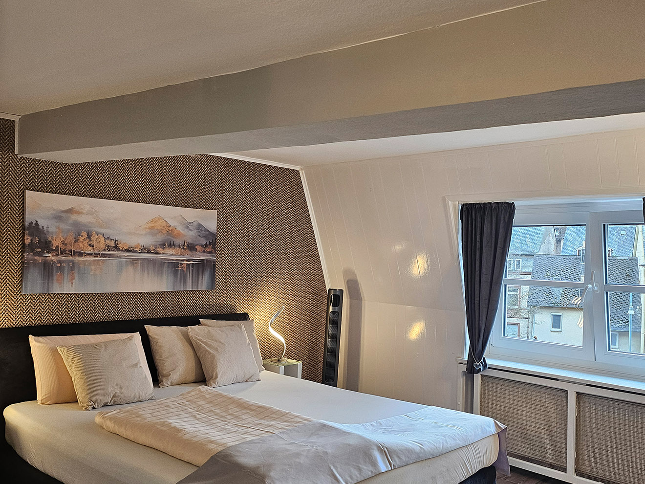 Unsere neu renovierten Zimmer verbinden modernen Komfort mit einer warmen, einladenden Atmosphäre. Mit viel Liebe zum Detail eingerichtet, bieten sie Ihnen den perfekten Rückzugsort nach einem erlebnisreichen Tag in Idar-Oberstein.